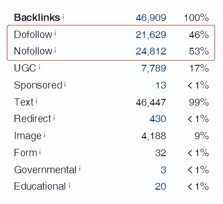 自然的外鏈方式應(yīng)該是多樣的,如果一個站點(diǎn)只有dofollow鏈接,或者占比很高,那這個現(xiàn)象就非??梢闪耍晕覀兣紶栃枰z查回網(wǎng)站dofollow和nofollow的鏈接比例。