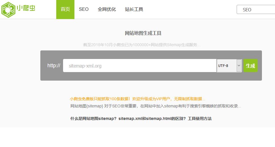 注:小爬蟲工具爬行網站地圖免費版只能爬行100條url,而我們網站肯定不止100條鏈接,小爬蟲的單域名付費30元/年,也不貴,操作還比較簡單,思齊SEO還是比較推薦的。